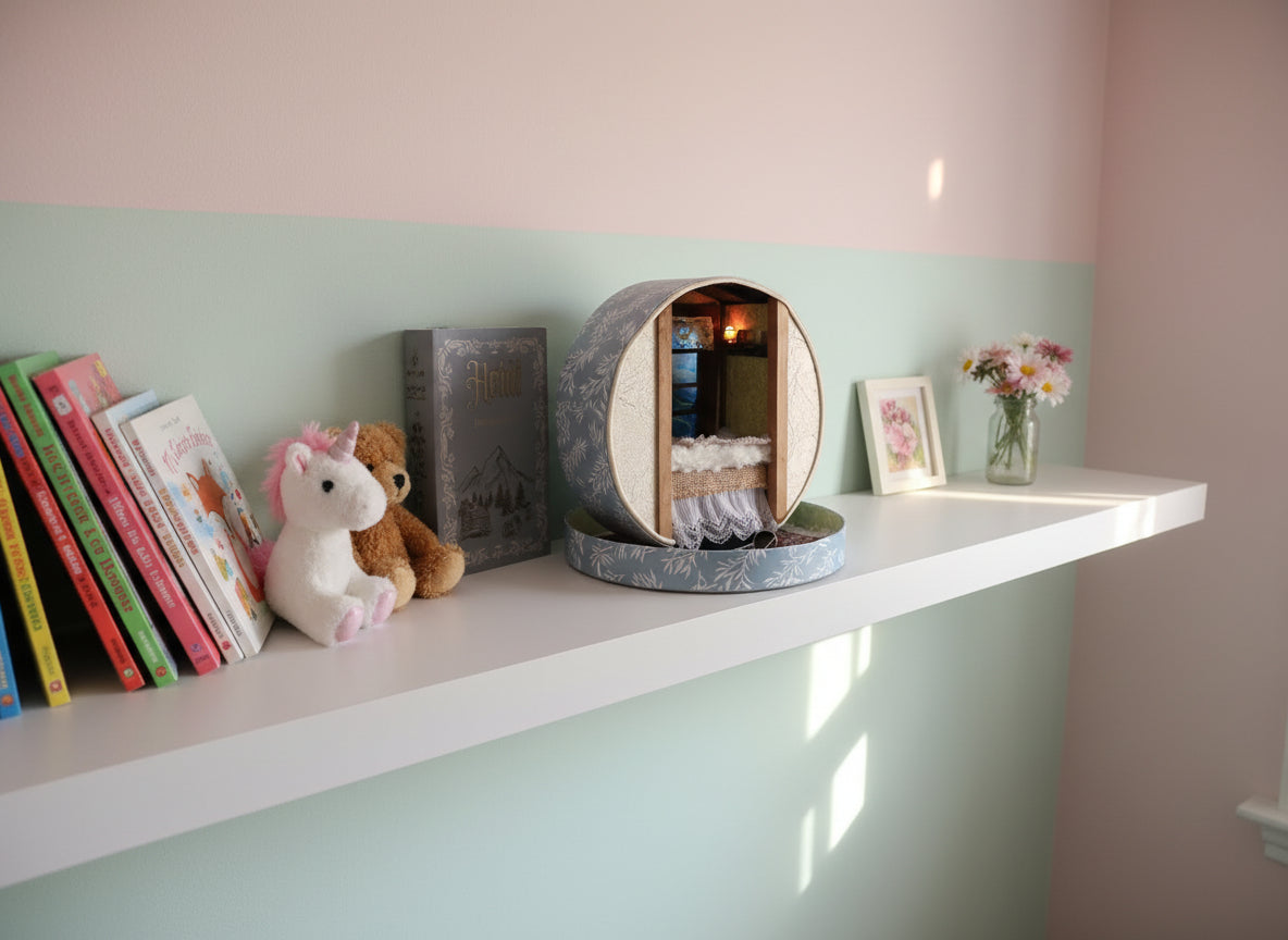 Displayed on a shelf in a child's bedroom, the diorama serves as a source of inspiration and wonder, inviting curiosity from all who pass by.