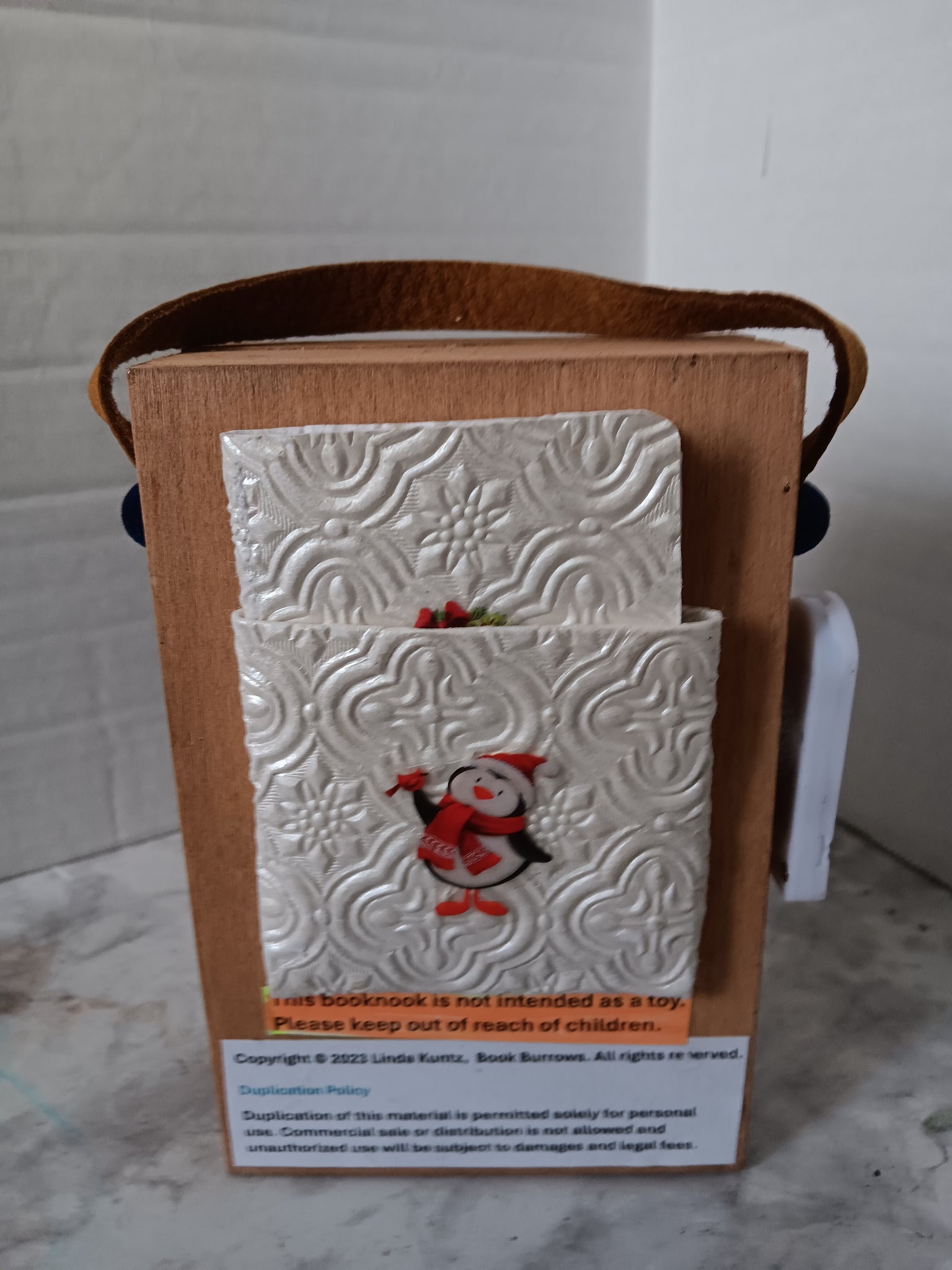 Accompanying the diorama is a miniature booklet with the poem "Twas the Night Before Christmas" located in a pouch on the back of the bookbox.