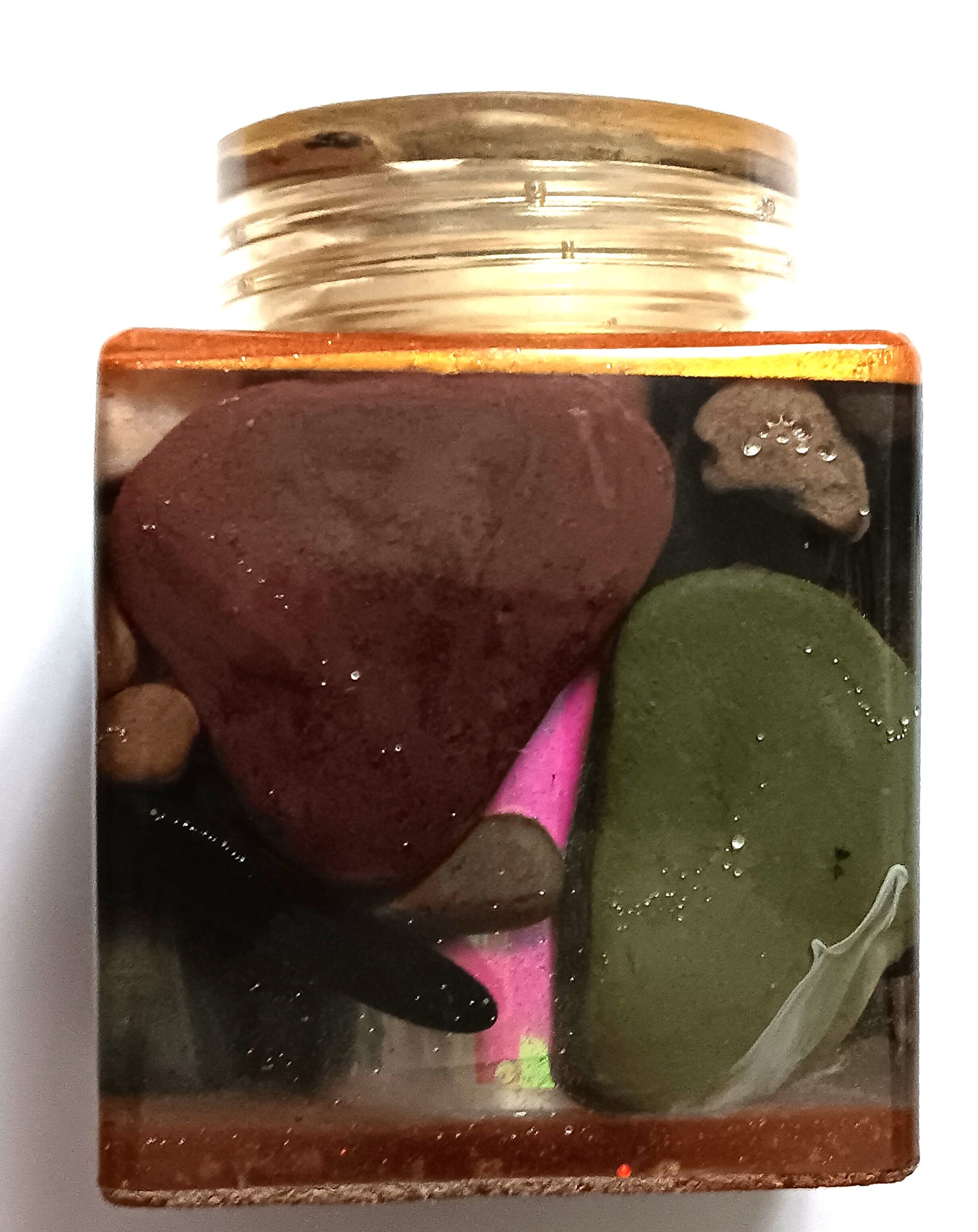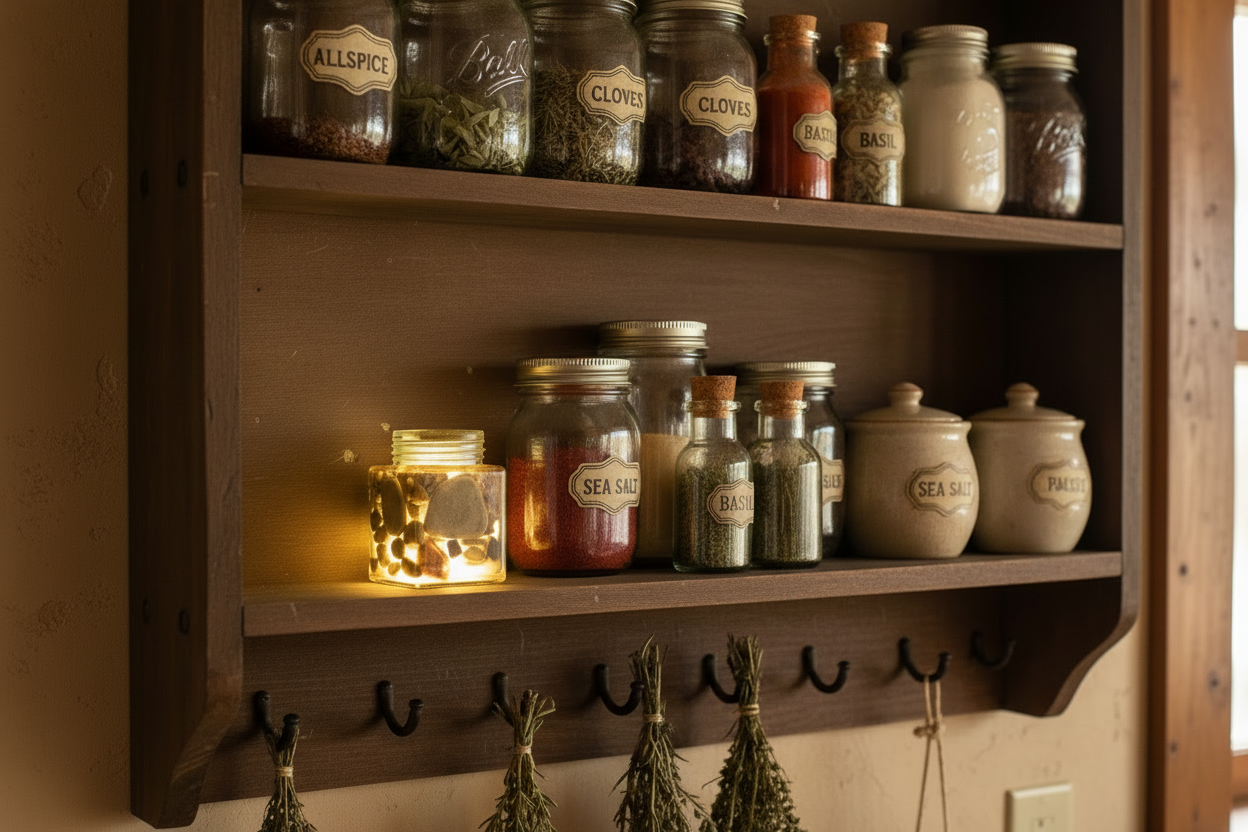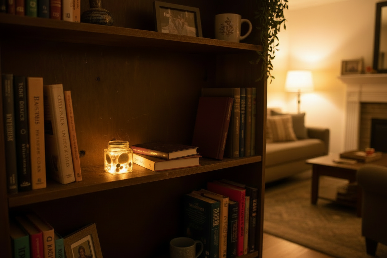 The background in the living room and kitchen pictures are AI-generated, while the jar is original.